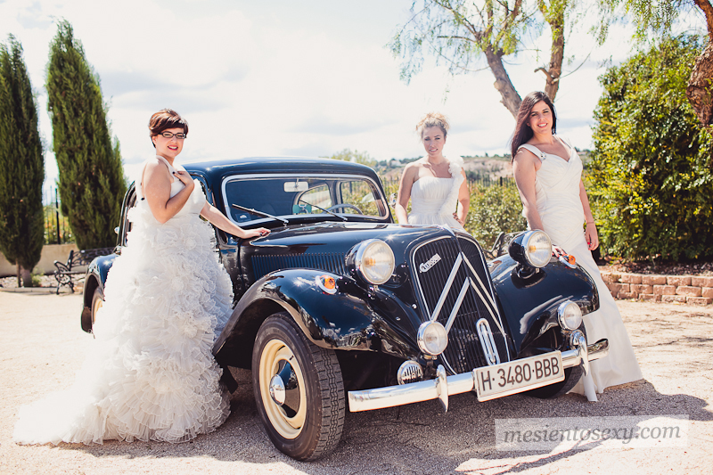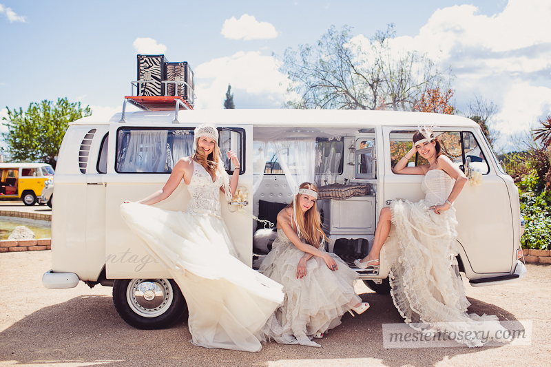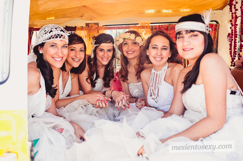 Las novias de YolanCris con su estilo más hippie y bohemio fueron en unas caravanas vintage de Vintage Tours y las novias más clásicas de Miquel Suay en coches de época de Coches para boda. Un sueño para cada una de nosotras. Los ramos de las novias elaborados con tela y hechos a mano, eran de la firma BdeBlanca.