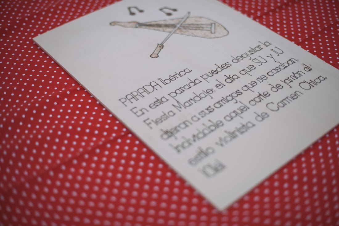 – Parada Ibérica : para decirles a sus amigos que se casaban… tuvieron que escoger un buen jamón, un buen vino y… olé! Para acompañar qué mejor que unos huevitos de codorniz recién hechos.