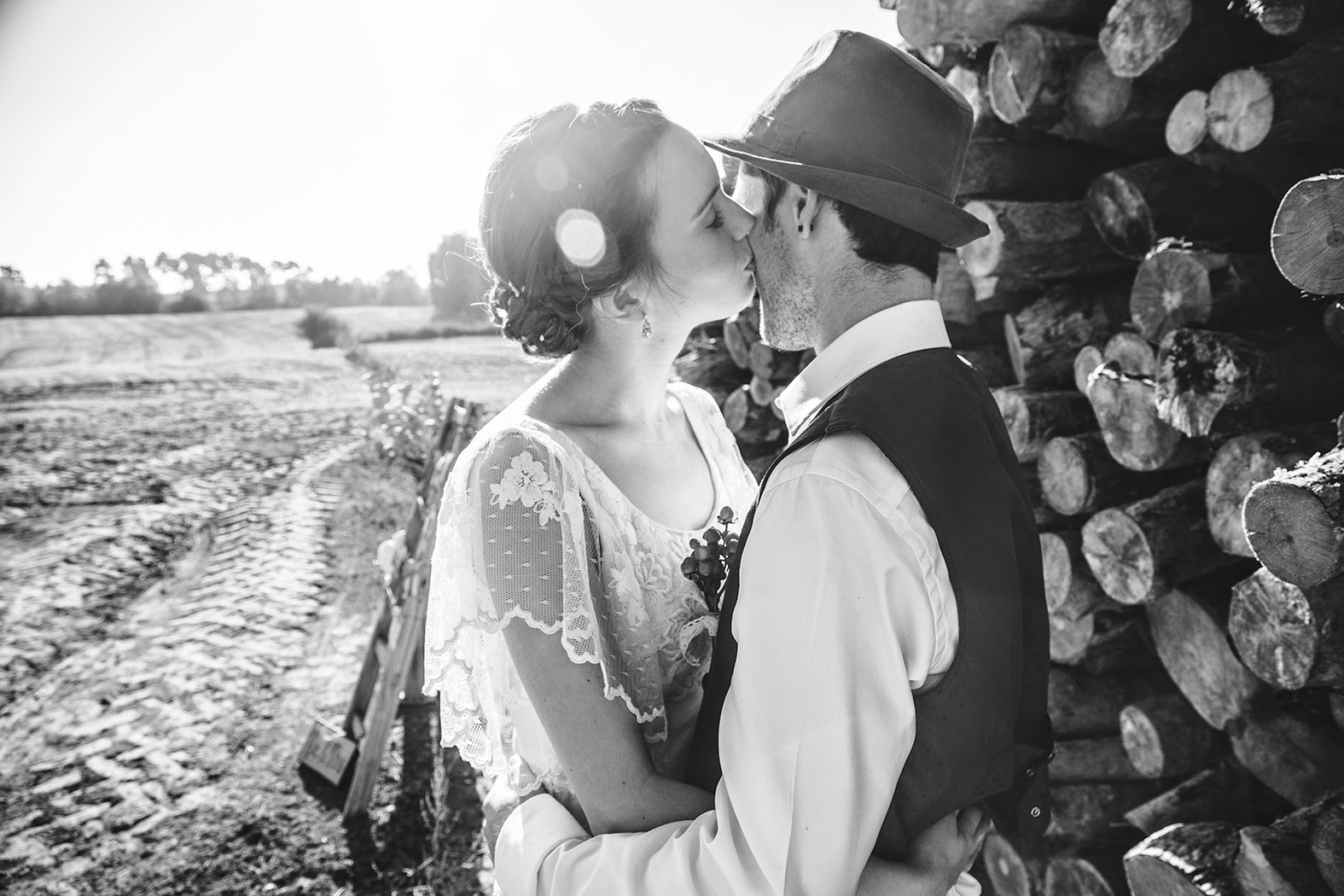 David y Anna así lo hicieron, querían una boda íntima e informal entre amigos, sin protocolos y con libertad para hacer lo que realmente les gustara. Su boda se celebró en una serrería en Cataluña un día soleado de otoño de 2013, como podéis comprobar los colores de los campos, los troncos y de la naturaleza en general conjuntaban con su decoración low cost a base de botellas decoradas, flores silvestres, banderines de tela… Tengo que confesar que me ha robado el corazón el porta-alianzas por sencillo, barato y fácil de conseguir, ya que con un simple tronquito y una tira de tela… voilà! Y queda precioso.