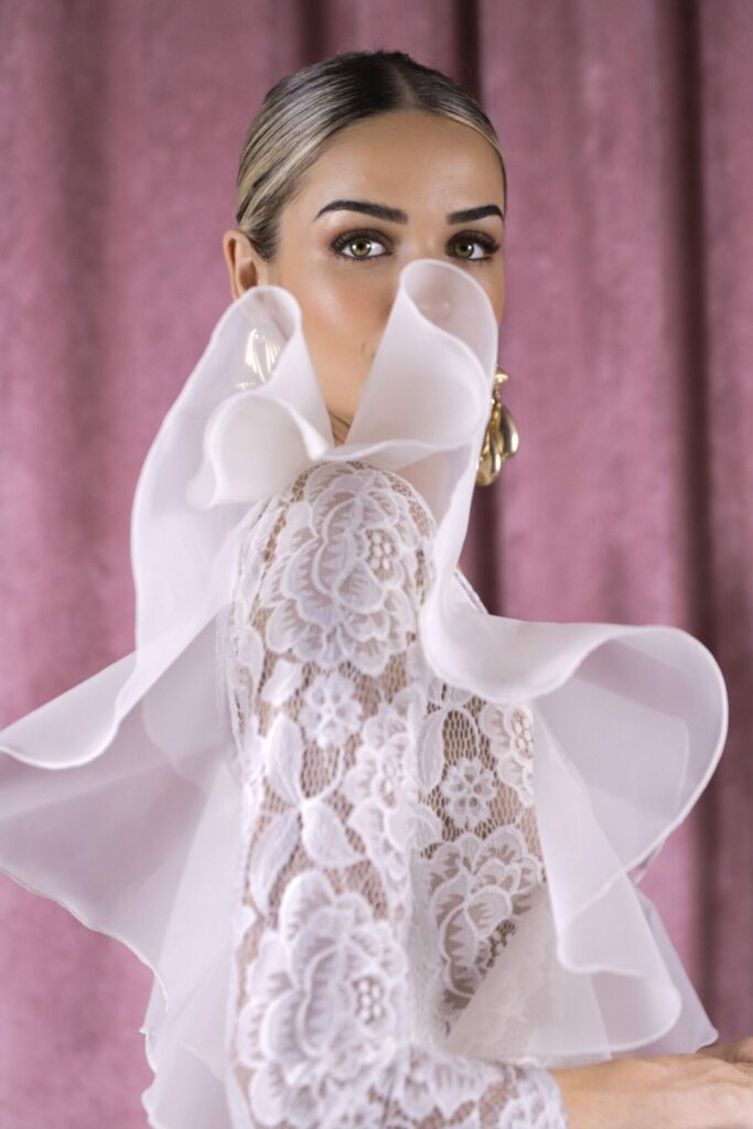 La marca, conocida también por su moda flamenca, baño e invitada, traslada su identidad a cada vestido de novia, logrando que cada diseño hable de la fuerza, elegancia y feminidad de la mujer que lo lleva.