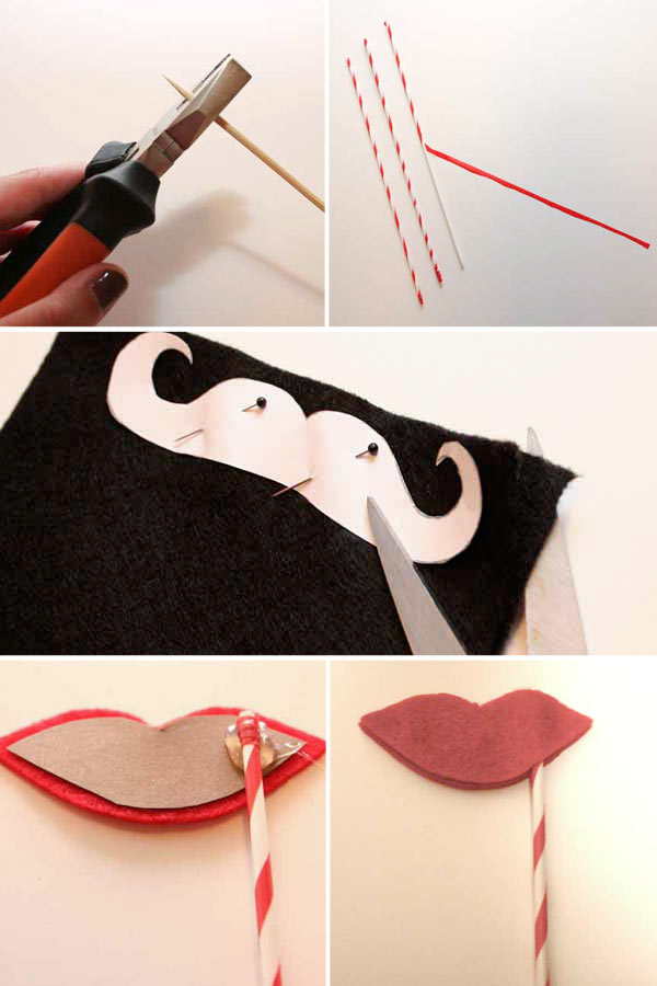 Si sois manitas podéis diseñar vosotros mismos algunos elementos como bigotes, gafas, labios… lo podeís hacer con fieltro y cubierto con cartón o con gomaeva, os dejo un mini DIY…