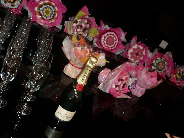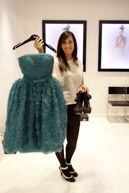 Entre dulces ramos de chucherías de la mano de Oomuombo y champagne Moët Chandon, empecé a escoger los vestidos de fiesta y de novia de la Colección 2012 de Rosa Clarà que me probaría más tarde. Un complemento indispensable: los espectaculares zapatos cedidos por Pura López.