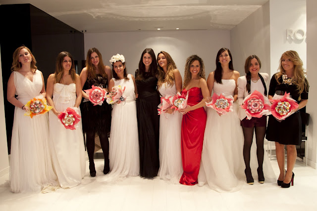 Tras un viaje relámpago de Barcelona-Madrid, a las 18h estaba super puntual en la tienda que Rosa Clarà tiene en la calle Velázquez nº 51. Nada más entrar observé un atelier precioso y empecé a conocer a algunas bloggers como Estefanía de Confesiones de una boda, Estefanía Con dos tacones y a las novias ganadoras, Arual y Esther,  todas encantadoras.