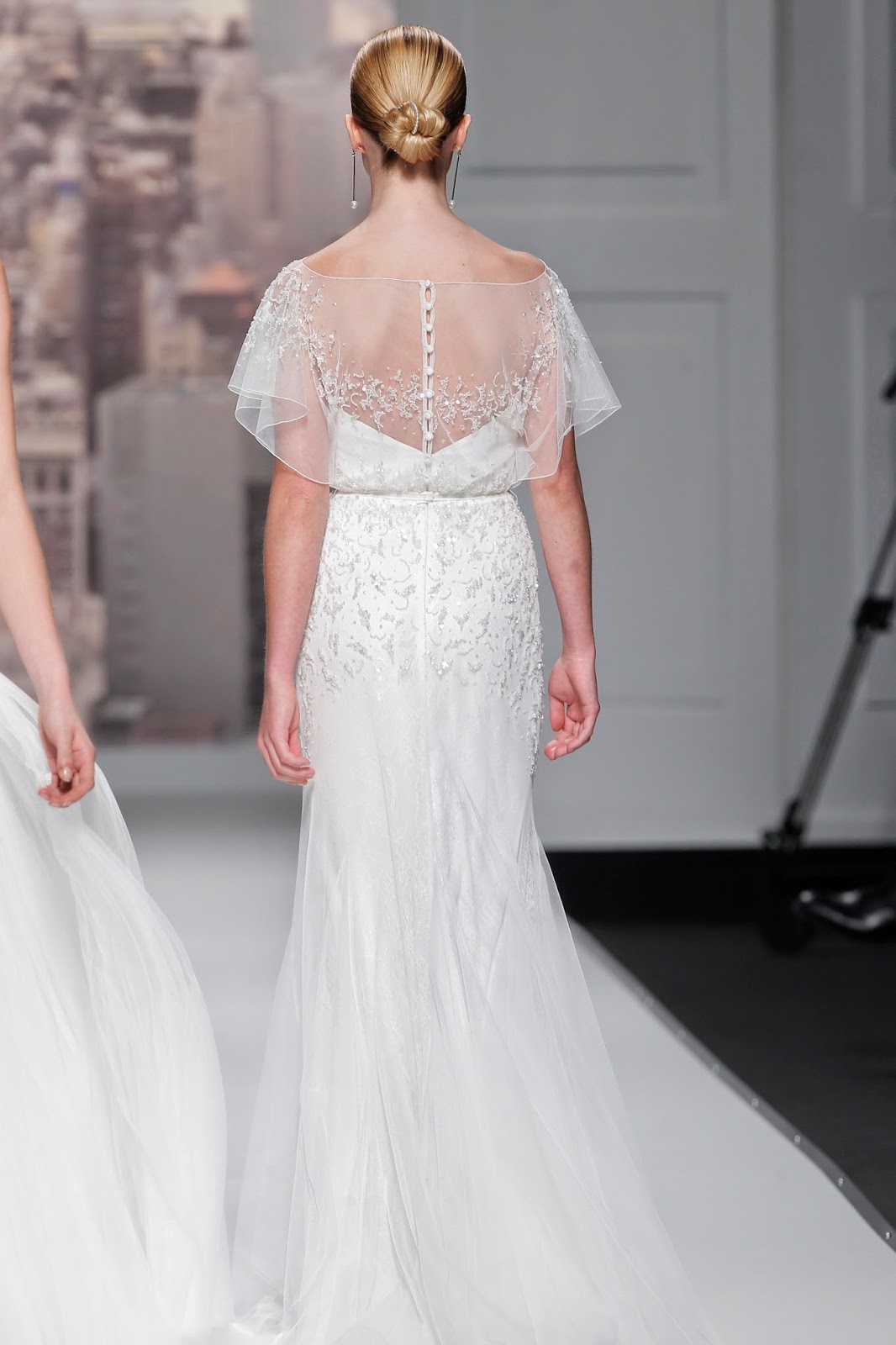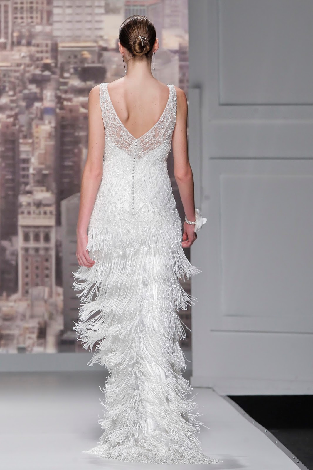 Entre sus nuevos diseños para las novias de 2015 se presentaron trajes cortos y largos de diferentes volúmenes y tejidos como la organza, el tul o el punto de seda fueron los protagonistas, aportando a la mujer un toque moderno, delicado y cosmopolita. Me sorprendió no ver ni un vestido con palabra de honor y en contraposición multitud de espaldas maravillosas y trabajadas hasta el último detalle para dar una importancia sublime a esta parte tan femenina de la anatomía de la mujer. Espaldas cruzadas o con transparencias, bordados realizados con pedrerías o encajes maravillosos y espaldas cruzadas que me encantaron. Os dejo con una selección para ir abriendo boca…