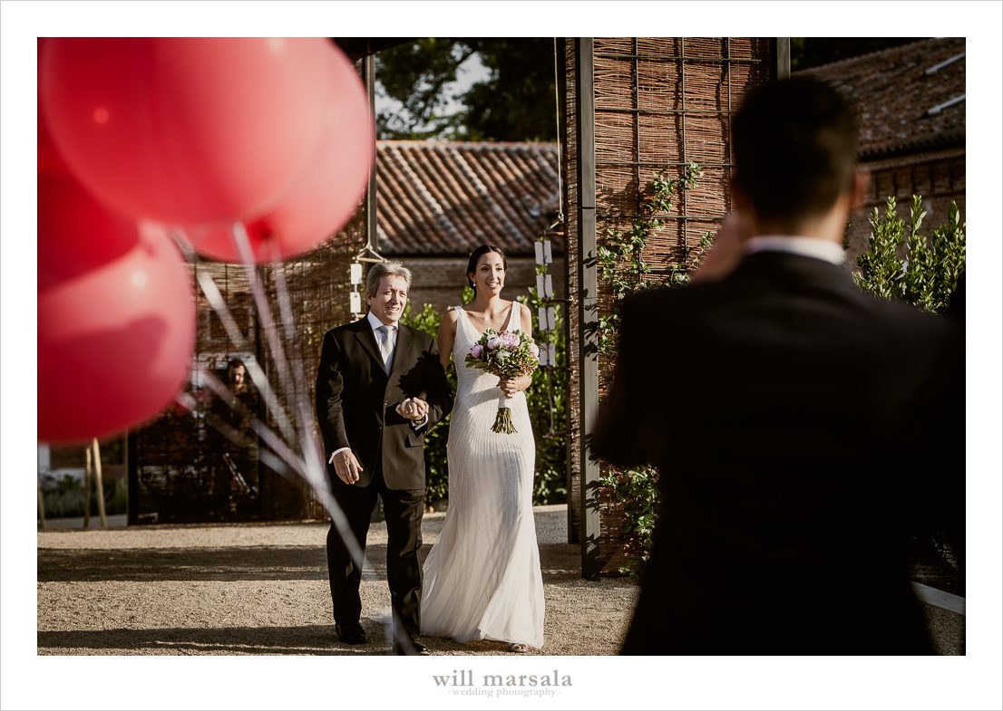 Salvador & Miriam escogieron unos outfits muy elegantes a la vez que sencillos. El novio se decantó por lucir un traje negro sobrio que adornó con una pajarita y un boutonniere precioso. La novia optó por un vestido muy delicado que definía su silueta de la firma Aire Barcelona. Sin duda una boda temática muy entrañable, cercana, llena de color y de risas aseguradas, con las narices solidarias de payaso de Fundación Theodora que regalaron a los invitados.