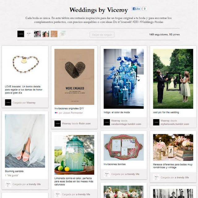 Empezamos la semana con un SORTEO que os gustará a muchas de vosotras y también a todos aquellos novios que quieran tener un detalle especial con su pareja. Como ya sabéis hace algunas semanas que a través de las redes sociales os he ido informando de mi nueva colaboración con una marca muy conocida: Viceroy. Pidieron mi colaboración para poner imágenes inspiradoras en su nuevo tablero de Pinterest, junto a otras bloggers tan conocidas como Macarena Gea, A trendy life, De boda con Marón y Boda Bella.