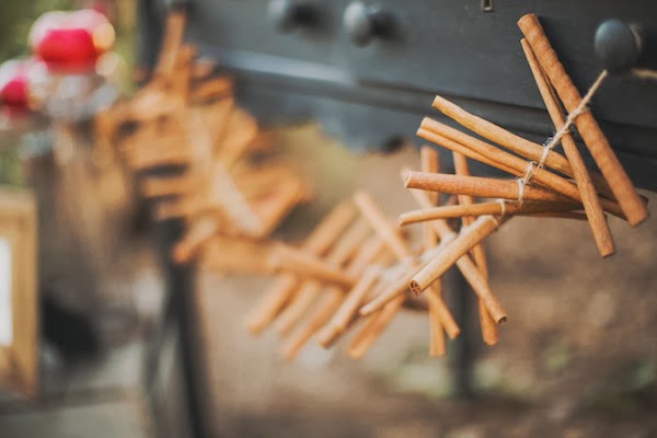 Después de un puente intenso con amigos y donde lo hemos pasado de maravilla, vuelvo a la carga para mostraros más ideas diferentes para vuestras fiestas. Creo que muchas de las decos o de los DIY que os enseño sirven tanto para un rincón especial para vuestra boda, como para decorar una fiesta o, incluso, para que vuestra casa luzca espectacular y distinta estas navidades. Así que el otro día vi esta sesión preboda tan otoñal, llena de cajas de madera, manzanas, cabezas de ciervos, piñas… que no me he podido resistir a colgar este DIY. Se trata de una guirnalda construída a base de canela en rama, sólo necesitaremos eso y una cuerda rústica para poder elaborarla. Me encanta la idea porque es super sencilla de llevar a cabo y porque con ella podremos decorar la boda, la fiesta o la casa y… nos aportará un aroma exquisito y un toque muy natural. Me imagino un árbol de navidad todo decorado con canela, o de canela pintada en tonos dorados o plateados… mmm creo que me voy a animar a hacerlo, ¿qué te parece la idea?