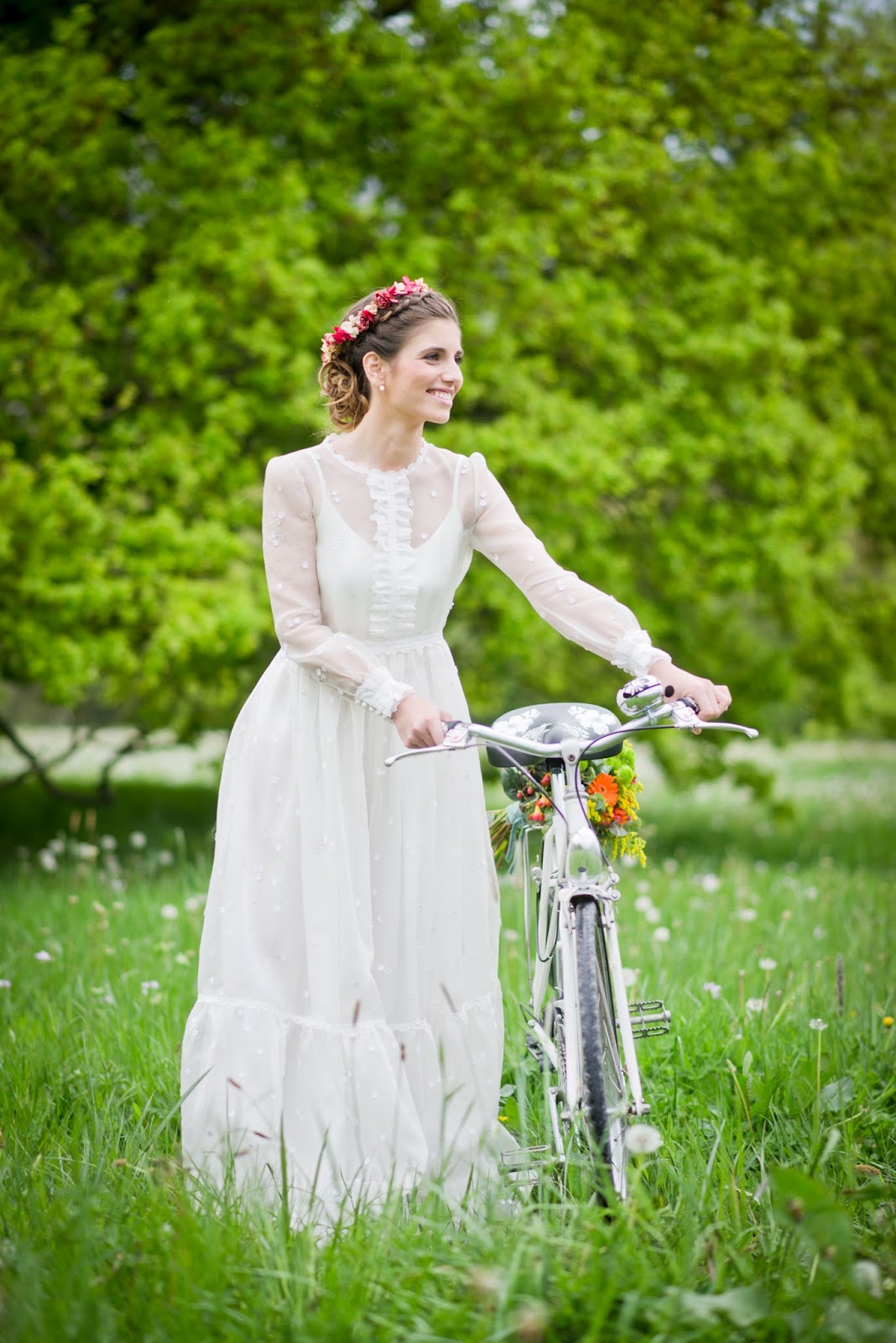 ‘Yellow Bells’ son unas flores que crecen de manera silvestre en el campo y que estuvieron presentes acompañando esta preciosa editorial llena de sobriedad, sensualidad y delicadeza gracias a los vestidos de novia de Alicia Rueda. Vestidos de novia con un aire retro/vintage, donde el tul bordado, las mangas largas con acabados impresionantes o las espaldas transparentes con infinitas botonaduras son los protagonistas. Junto con estas florecillas cubría la estampa un enorme roble centenario que junto con una bicicleta vintage no necesitaron más atrezzo para poder mostrar un trabajo maravilloso.