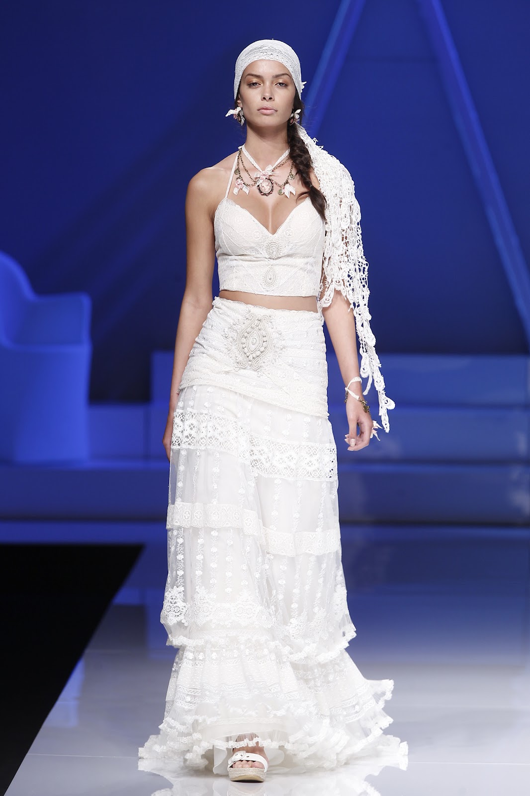 Sin perder su aire bohemio y hippie Yolanda y Cristina o, lo que es lo mismo, Cristina y Yolanda, esta vez han mostrado una colección muy variada desde el vintage con el que nos tienen acostumbradas, pasando por el prêt-a-porter, hasta llegar a diseños más bohemios y con toques muy sensuales y femeninos.